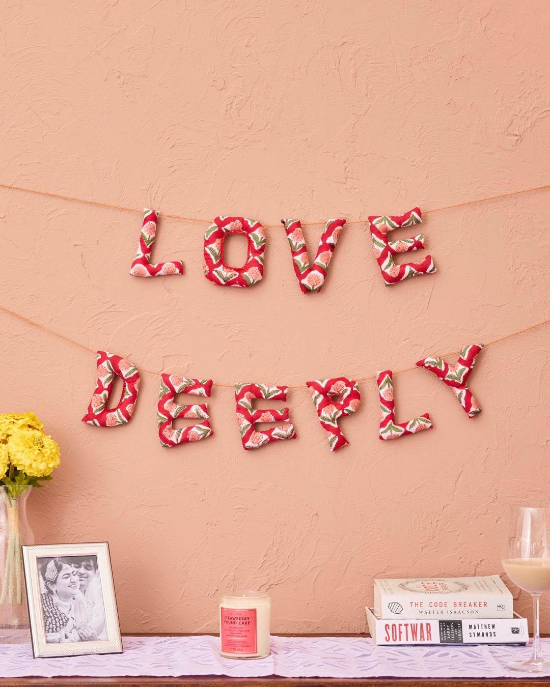 For a romance that lasts forever. Made from eco-friendly and zero waste textiles, this quirky and playful bunting serves as a gentle reminder to take deep breaths and find your inner peace. Perfect for creating zen zones at home.